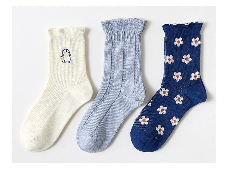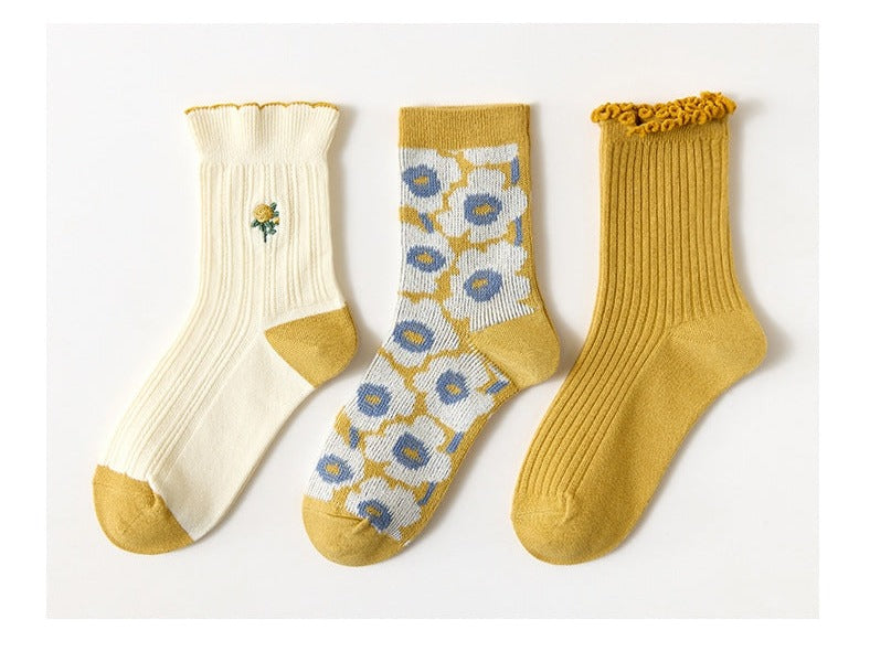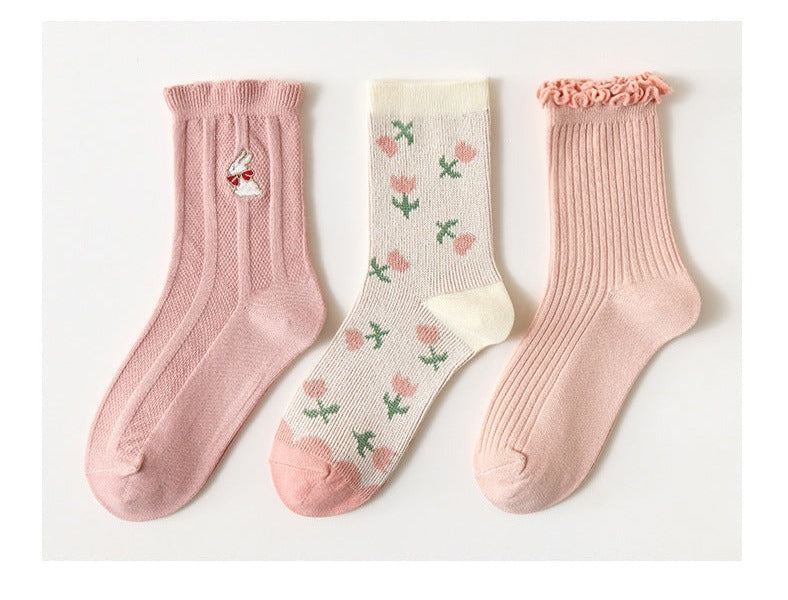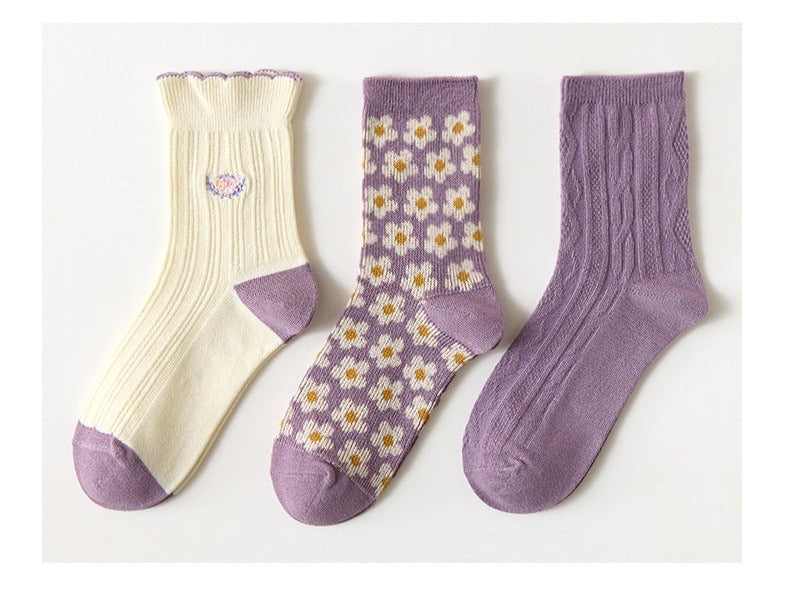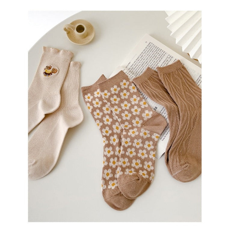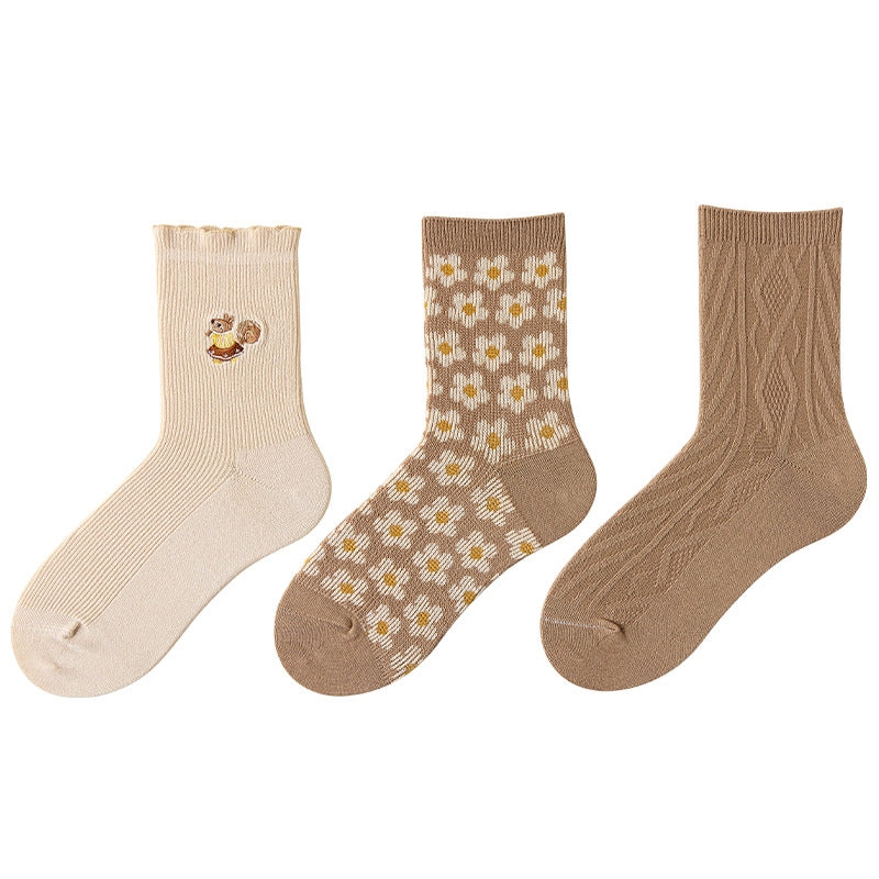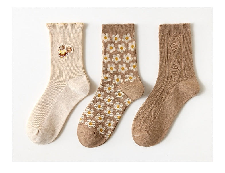 Cute Embroidered Socks Set (3 Pairs/Set)